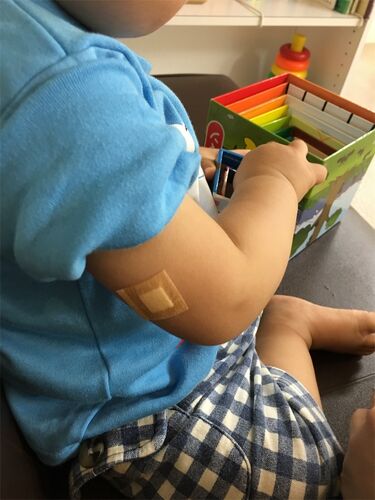 4種混合から1カ月。区の保健センターでBCGしてきた。はんこちゅうしゃね。 した直後30分くらい後液体を腕に乗せて、その上から剣山みたいに針がたったハンコをぎゅーーー!!え?そんな押すの?ってくらいぎゅーー!!を2回。3秒くらいあけて泣き出したけど…