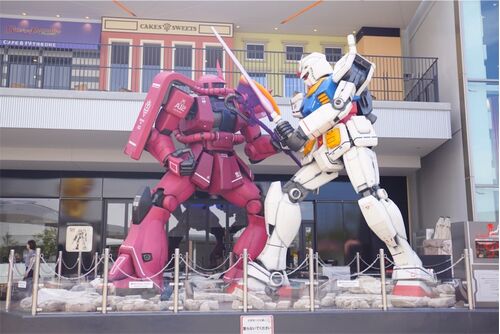 大阪のエキスポランド跡地にできた、エキスポシティへ。 ガンダムとシャアザクがお出迎えしてくれた。 開館ちょうどくらいに駐車場について、チケット購入列はだいたい30分待ちだった。 大きな観覧車。 入館に列はできてなかった。もっと混んでるかと思って…